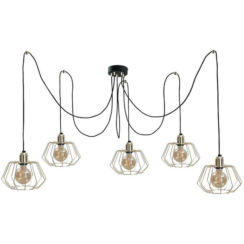 Keter Lighting - 578 Plafoniera a sospensione Laya Cluster Oro, 5x E27 | Finitura: Oro | Altezza: min. 40 max. 180 cm | Lunghezza: min. 40 max. 180 cm | Larghezza: min. 40 max. 180 cm | Tipo di lampada: E27 | N. di lampade: 5 | Lampadina inclusa: no | Dimmerabile: Sì - Sono necessarie lampadine dimmerabili | Potenza (max): 60 W