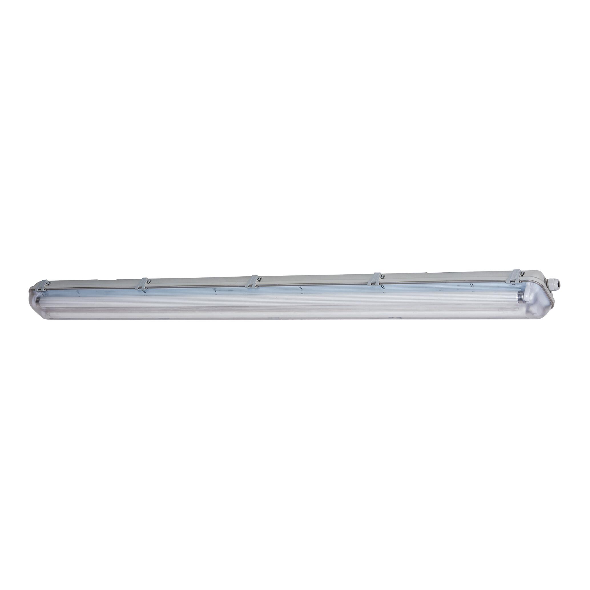 Plafoniera LED integrato, lunghezza 120 cm. Ideale per ambienti umidi come garage, cantina e lavanderia. Luce calda, ideale per creare un ambiente confortevole e accogliente
