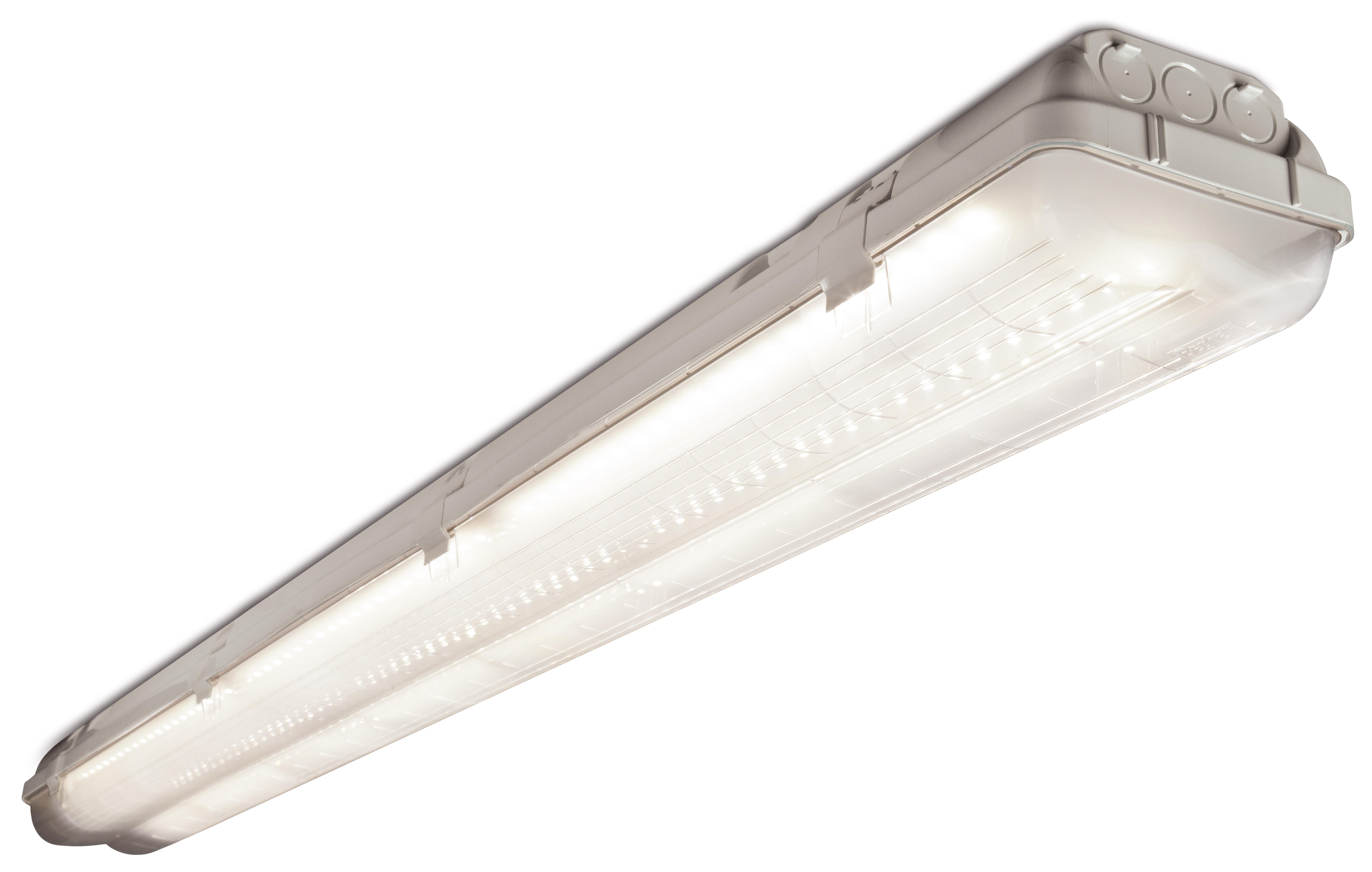 Plafoniera robusta e sicura, adatta a soluzioni industriali e commerciali. Ideale per ambienti umidi come garage, cantina e lavanderia. Luce naturale, ideale per i grandi spazi aperti