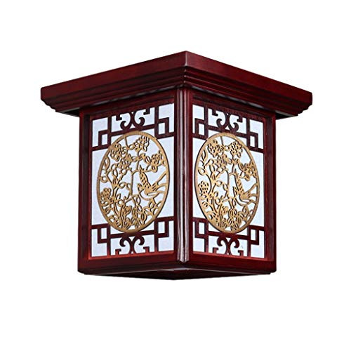 VREF Plafoniera Stile moderno cinese solido quadrato di legno del soffitto E27 imitazione pelle di pecora paralume Balcone Sala da tè luce di soffitto Lampada da soffitto a risparmio energetico