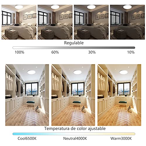 Plafoniera a LED con Telecomando con APP Bluetooth Lampada da Soffitto a LED Dimmerabile Ultra Sottile Rotonda Luce Impermeabile 28W, 2800LM, 3000K-6500K, per Camera Letto, Soggiorno, Bagno, Corridoio