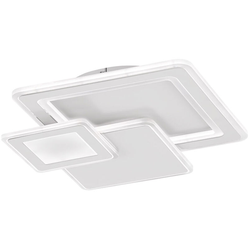 Descrizione L'aspetto chiaro si abbina meravigliosamente a tutti i moderni arredi per la casa. Gli elementi di illuminazione disposti tridimensionalmente conferiscono alla lampada profondità ottica. L'atmosfera luminosa può essere impostata su luce fredda o calda e dimmerata in modo continuo. La funzione di memoria integrata ricorda sempre l'ultima impostazione selezionata. L'illuminante è installato in modo permanente nella lampada. Particolare lampada • Tipo di lampada: plafoniera • Materiale: metallo, plastica • Colore bianco • Grado di protezione: IP20 • Classe di protezione: 1 • Telecomando • dimmerabile • Funzione memoria • Circuito CCT (bianco caldo e bianco freddo) • Lunghezza x larghezza x altezza in cm: 48x48x7,5 • Sorgente luminosa: LED • Lampadine incluse: Sì (installate in modo permanente) • Potenza della lampada: 36 watt • Flusso luminoso: 2900 lumen • Colore della luce: bianco caldo e bianco freddo • Tensione: 230V, 50Hz Dettagli lampadine • Tipo di sorgente luminosa