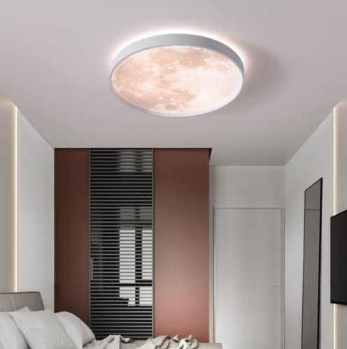 Zi Yang LED Luna Plafoniera con telecomando dimmerabile Creativo Luna Camera da letto Lampada da soffitto Lampada della bambini Per bagno cucine salotto il giro Lampada decorativa,Bianca,48cm