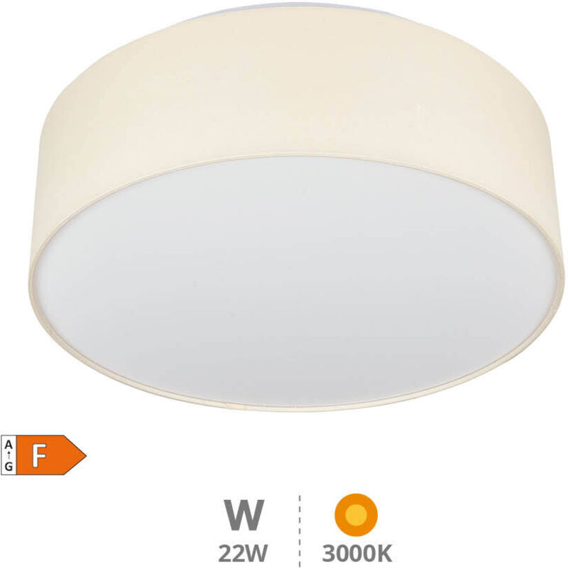 Plafoniera a led orientabile Kasker beige Forma: rotonda. Driver LED incluso. Temperatura e intensità regolabili. Con memoria dell'ultimo stato colore. Timer 30°. Modalità notturna. Include telecomando (utilizza 2 batterie AAA, incluse). Materiale: tessuto + base in metallo + diffusore in PC. Uso interno.