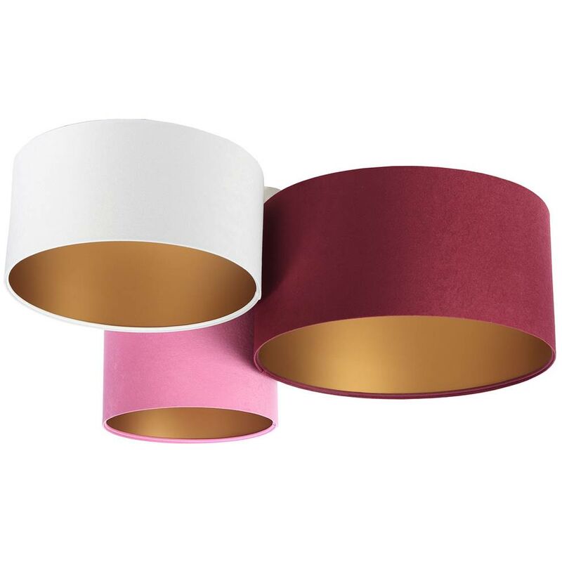 Lampada del soffitto Violet, rosa, bianco, oro 3 x E27 L: 91 cm H: 30 cm Dimmessibile in CM: Altezza: 30, lunghezza: 91, Peso in kg: 2,3 Diametro ombrello: diametro 40 cm altezza 20 cm, diametro 50 cm 2. altezza 25 cm, diametro 30 cm di altezza Lampade contengono: No Tipo di lampada/versione: e27 Prestazioni massime in watt: 60 Dimmabile: Sì Classe di protezione: ip20 materiale per la casa: metal Colore: Black Materiale vetro/dispensa: tessile da velour (microfibra) su base in PVC. Colore vetro/ombrello: Violet, rosa, bianco, Gold Informazioni aggiuntive: Cavo di alimentazione trasparente nascosto nel fissaggio del soffitto