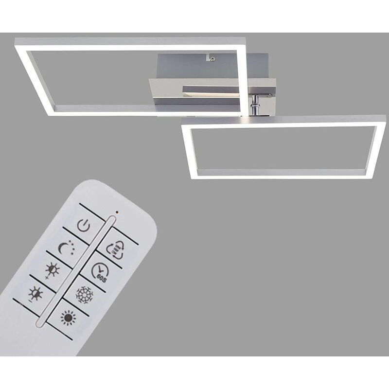 Questa moderna plafoniera a LED con due moduli LED rettangolari (uno dei quali girevole), in metallo e plastica, è anche una bella decorazione per la tua casa grazie al look in alluminio spazzolato e al supporto in metallo cromato - per un uso versatile, ad esempio come lampada da soggiorno o da camera da letto. Grazie alla dimmerabilità e al controllo della temperatura del colore (2.700 Kelvin - 5.000 Kelvin), è possibile regolare le condizioni di illuminazione in base alle proprie esigenze e necessità - viene salvata l'ultima impostazione selezionata (funzione memory) Ulteriori vantaggi di questa semplice lampada da soffitto sono la funzione di illuminazione notturna e il timer integrato - con l'aiuto del telecomando in dotazione è possibile controllare la plafoniera comodamente dal proprio divano con un risparmio energetico di 40 watt, i due moduli LED hanno una potenza luminosa totale di 3.300 lumen e creano una luce molto piacevole. Hanno inoltre un'elevata durata media di vita