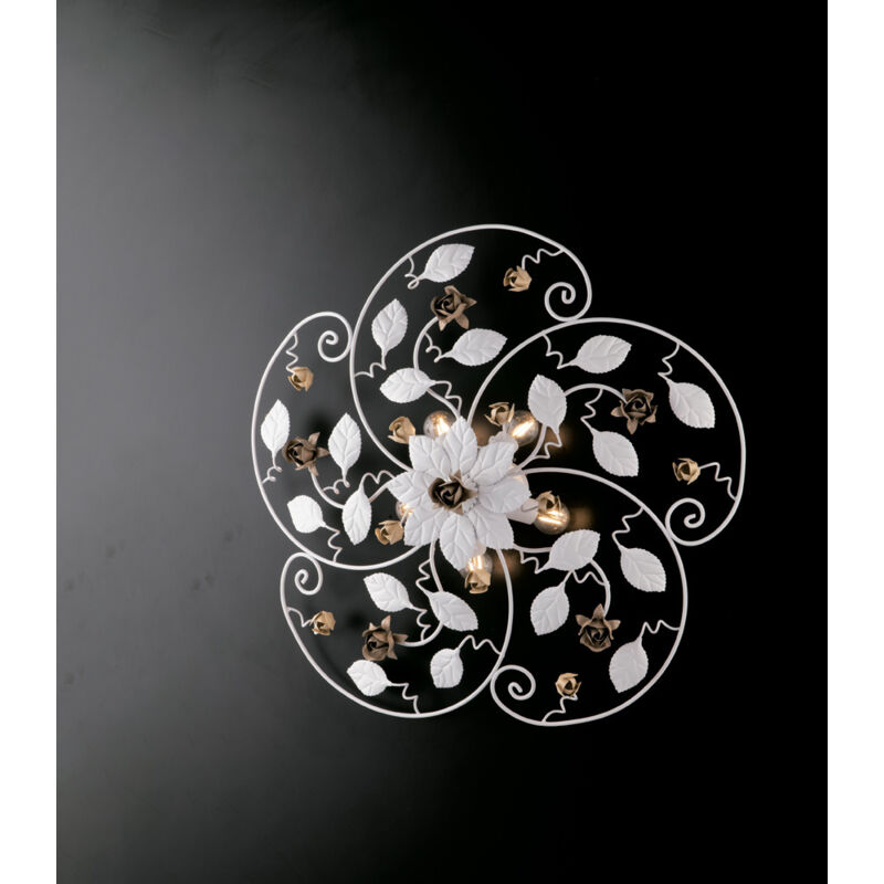 Plafonierain ferro laccato bianco shabby 5 luci