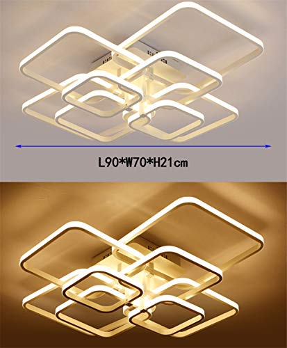 Plafoniere a LED Dimmerabili Soggiorno Camera da letto corridoio Lampada a Sospensione Design Quadrato Lampadario Soffitto Moderno Acrilico per sala da pranzo Sala da bagno Luce, Telecomando (L90cm)