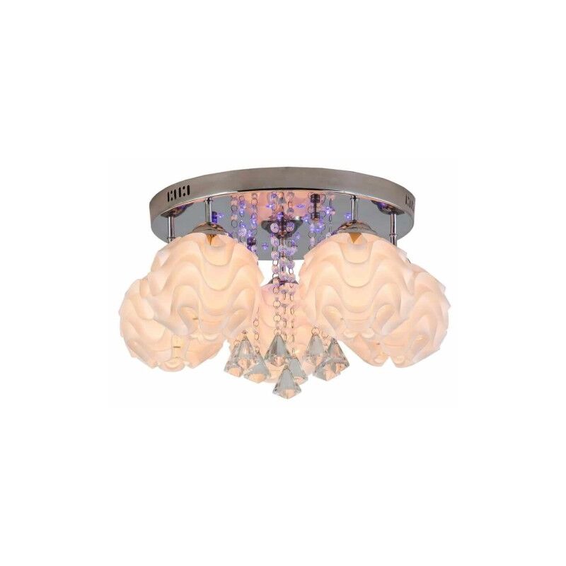 Lampada da soffitto Sada 5 - una delle lampade più originali, moderne e di design del nostro assortimento di lampade da soffitto. L'apparecchio ha cinque paralumi più piccoli in plastica, a forma di palline ondulate. Il tutto è montato su una cornice rotonda argentata. I paralumi sono bianchi/crema, il che rende la lampada Sada adatta a stili di interni più ampi. La cosa più interessante è che la lampada, oltre a cinque sorgenti luminose, che sono lampadine E14, ha anche un faretto LED integrato che si illumina di colori! Vale a dire, nei colori rosso, viola e blu. Grazie a ciò, questa illuminazione dona una luminosità unica. Questo prodotto è destinato principalmente al soggiorno e alla camera da letto. Sicuramente nessuno passerà davanti ad esso con indifferenza, perché attira l'attenzione con la sua innovazione! Il set include un telecomando Dimensioni: 40x38 cm Materiale principale: Metallo Materiale aggiuntivo: plastica Tipo di portalampada: E14 Numero di sorgenti luminose