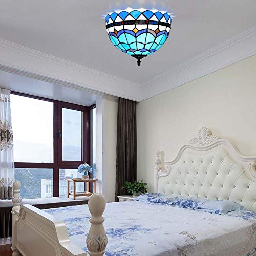 Plafoniere stile Tiffany, lampada da soffitto da 12 pollici in vetro colorato for corridoio, plafoniere con decorazioni mediterranee for soggiorno, sala da pranzo, camera da letto, luci E27-2