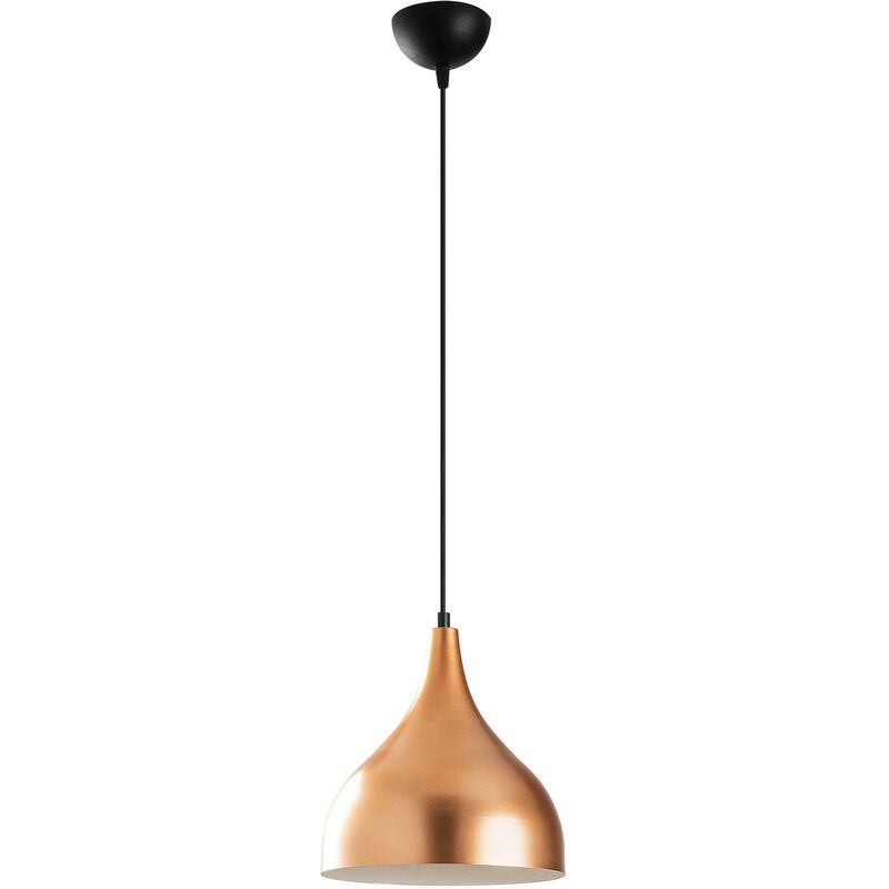 Lampada da soffitto Struttura in metallo Diametro: 26 cm Altezza: 126 cm Diametro del paralume: 26 cm Altezza paralume: 30 cm Altezza regolabile Diametro della base: 10 cm Altezza della base: 6 cm Lunghezza cavo: 90 cm Tipo di filettatura: E 27 Max 40 W Comprese le istruzioni di montaggio e il dispositivo di connessione IP20 Colore: rame Bianco Nero