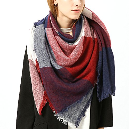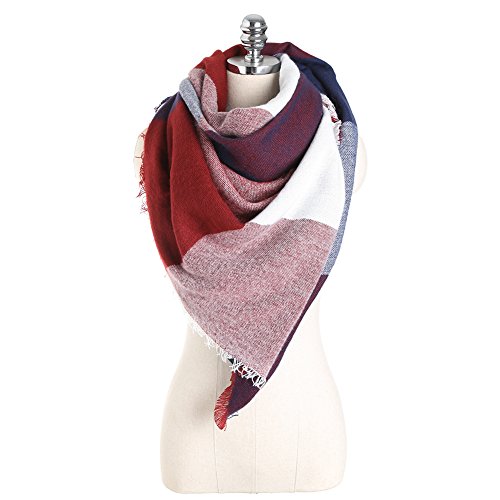 Plaid Sciarpa Donna Inverno, Vandot Moda nappe morbido donne sciarpa Pashmina avvolgere scialle Scarf wrap Shawl, Sciarpa Donna Primavera Autunno in Cachemire Caldo Modello Lattice Scialle Stole con Nappa Stile Quadrato Antunno Invernale, Sciarpa Donna Grande Moda o Scialle Come Morbido e Confortevole Come Pashmina, Foulard Donna Elegante Grande Sciarpa -Vinous rosso + blu scuro + bianco