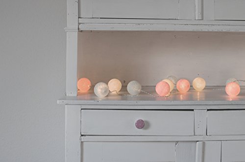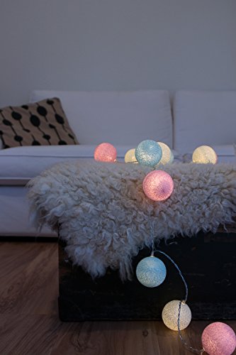 Plaights - Catena luminosa con 15 LED, funzionamento a batteria, con palline in tessuto e timer, colore: giallo, rosa e blu