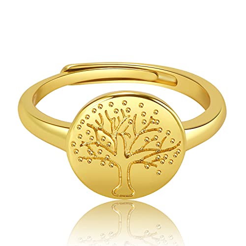 PLAINSHE Anelli placcati oro 18K da donna, anello con sigillo inciso albero della vita, anello di dichiarazione regolabile minimalista, anello personalizzato fine, regalo di gioielli per ragazze