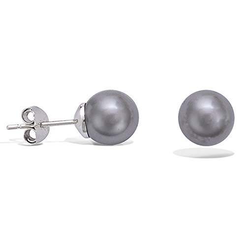 Les Plaisirs de Stella - Orecchini in argento 925/000 rodiato, perla sintetica grigia, 8 mm