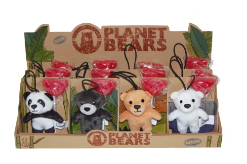 WOM Planet Bears, Lecca Lecca alla Fragola a Forma di Faccia di Orso Accompagnati da Morbidi Orsetti. Display di 12 Unità con 4 Diversi Modelli di Orso
