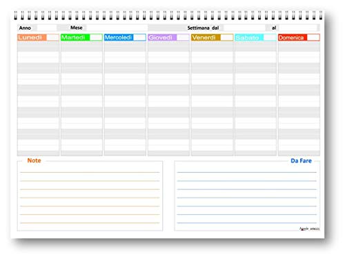 Planning da tavolo 21x30 SPIRALATO PiXEL con note - non datata (55 fogli da 90 gr) agenda da tavolo perpetua