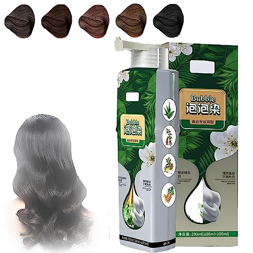 Pure Plant Extract for Grey Hair Color Bubble Dye, Plant Bubble Hair Dye Shampoo, 3 in 1 Hair Color and Conditioning, Household Easy-to-Wash Hair Washing Color Cream (Chestnut Brown)