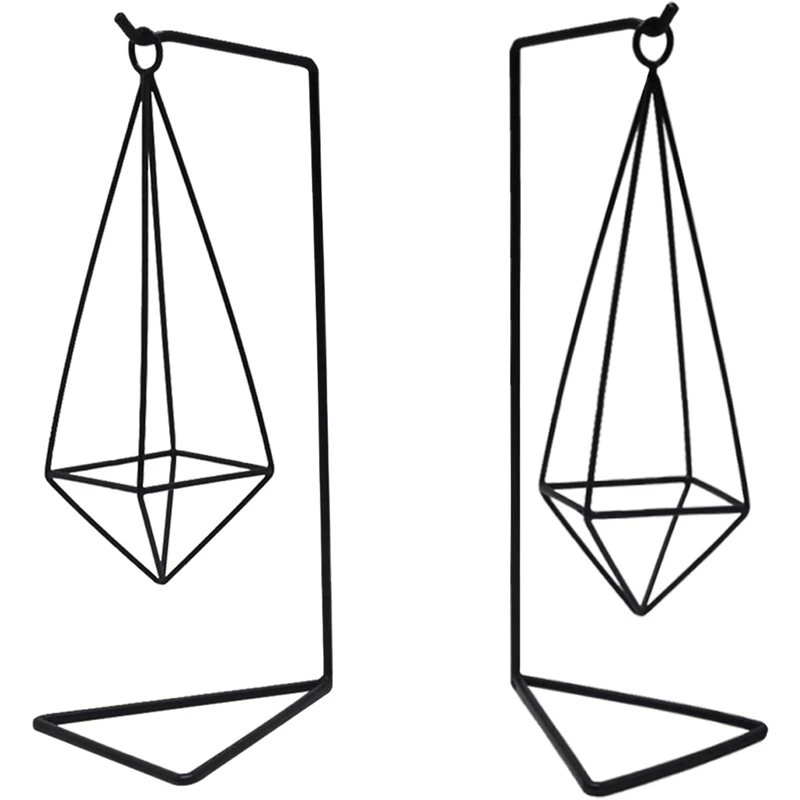 2 Pcs Air Plant Holder, Black Anti-Rust Metal Air Plant Stand, Geometric Style Air Plant Table Holder (Stand Included)