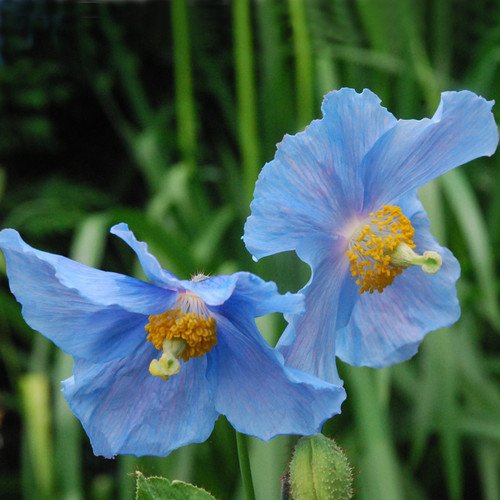 The fabulous "Himalayan Blue Poppy" forms clumps of hairy leaves from which arise strong stems carrying heads of silky, kingfisher-blue, almost transparent petals with golden eyes. This is one of the most beautiful garden plants and in good rich moist soil makes a hardy, perennial, slowly-improving clump.