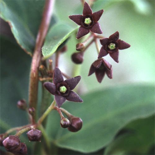 Bizarre, purple-brown, five-pointed flowers open with an indescribable musky perfume. Finally, on twining stems holding attractive long glossy leaves, sizeable, banana-like seed-pods expand before expelling their silky seeds. Turkey is the home of this rarely seen but intriguing hardy deciduous climber also known as the 'Silk Vine', which will weave and wind its way up any suitable support.