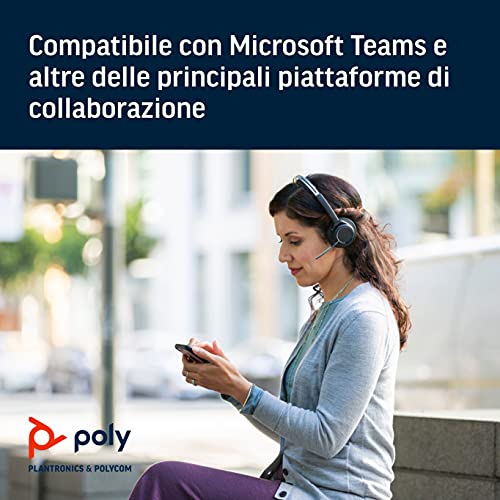 Plantronics - Cuffie stereo Bluetooth"Voyager Focus UC B825M", con base di ricarica e dongle USB A BT, sensore intelligente, braccio microfono, riduzione del rumore, Skype for Business, colore: Nero