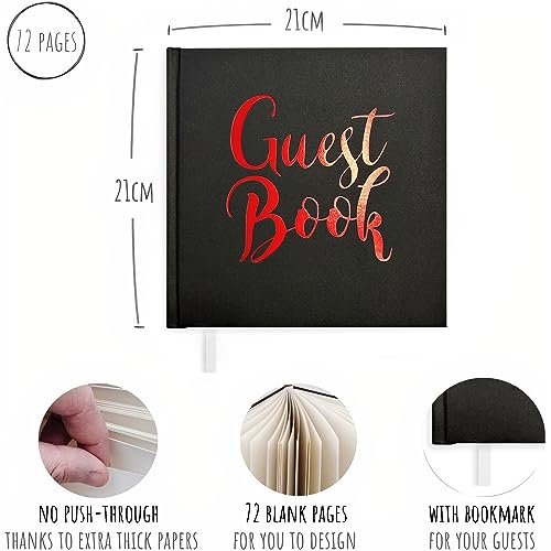 Plantvibes ® Black/Red Version Elegante libro degli ospiti, 72 pagine, copertina rigida, carta di alta qualità, libro degli ospiti vintage per matrimoni, battesimi o compleanni