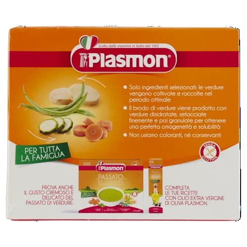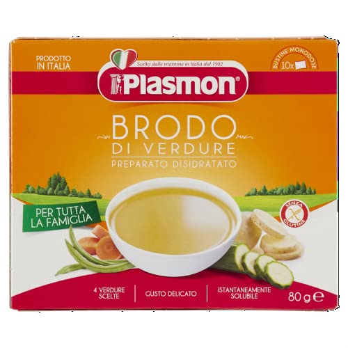 Plasmon Brodo di Verdure Preparato Disidratato, Ideale per tutta la famiglia, 4 verdure scelte, Confezione da 4 x 80 g