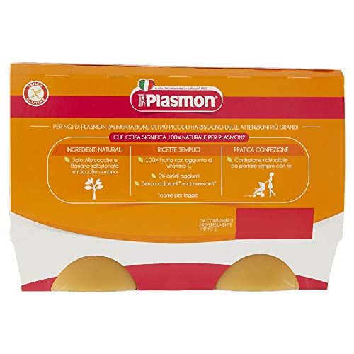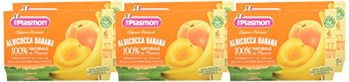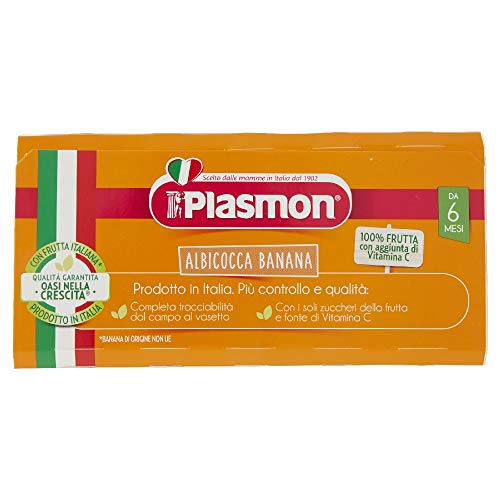 Plasmon Omogeneizzato La Frutta dei Bambini Albicocca e Banana 100gr 6 Vaschette con Frutta selezionata, 100% Frutta, con aggiunta di Vitamina C