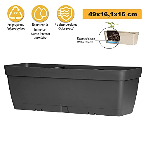 Art Plast Lolego Pot Vaso 50 cm con Riserva d'acqua, Antracite
