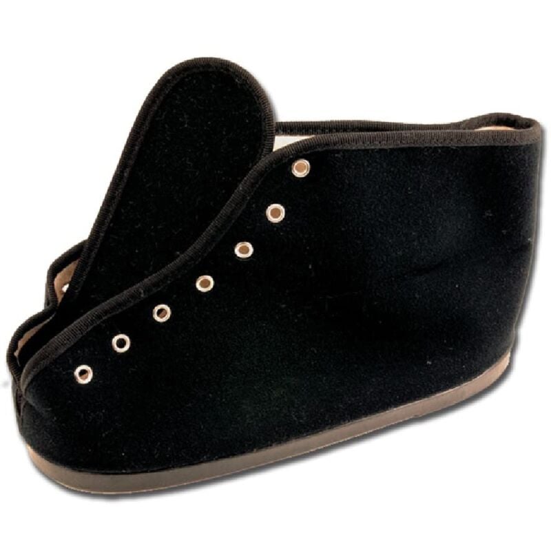 Scarpa copri gesso da indossa con il gesso o con un bendaggio rigido. Può essere indossata immediatamente dopo l'ingessatura in quanto traspirante. Le dimensioni sono identiche a quelle delle scarpe normali ma con una calzata molto ampia. La forma simmetrica permette di utilizzarle sia con il piede destro che con quello sinistro. Lavabile a 30°. Parte sopra in materiale sintetico biocompatibile resistente alle muffe e traspirante. Suola anti-scivolamento.