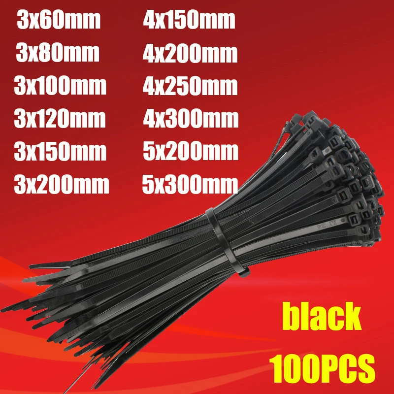 Plastic nylon cable tie 100 PCS black 5X300 cable tie fixing ring 3X200 cable tie zipper with 5X200 self-locking nylon cable tie