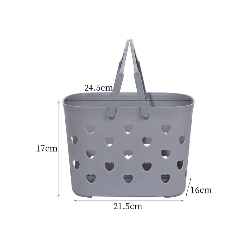 Features:Material: Made of high quality food PP plastic, durable and sturdy,lightweight and with handle easy to carry.Usage: This storage basket is perfect for holding bathroom product,such as shampoo, conditioner, shaving cream, shower sponge, bath bombs and salts, essential oils, face creams, body spray and more.Occasions: Not only can be used for store bathroom product, also can be used for store food/vegetables/fruits and kids bath toys.Delicate, light, portable, easy to use.Cute design, organizers of a good family. Product Description:Material: PPColor: Green, Blue, Pink, GraySize: 24.5 * 17 * 16cmUse Scenario: StoragePackage Included:1* Storage Basket Note:1. Please Allow 1Cm Difference Due to Manual Measurement and 3-5 Grams, the Difference Between Different Colors.2. Due to Screen Differences, the Color May Be a Little Different from What You Expect, Please Allow It.
