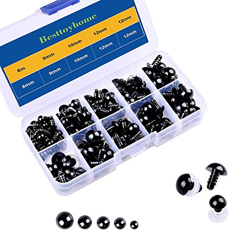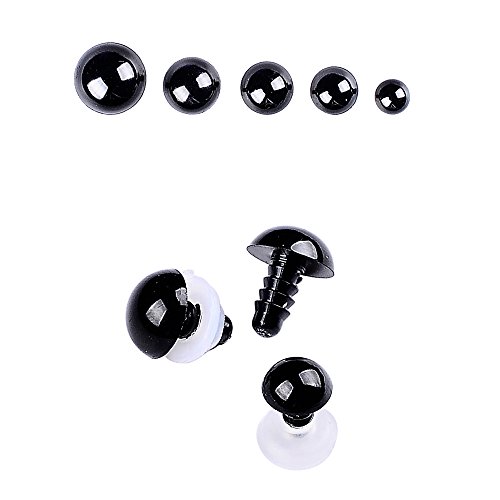 150 pz 6 - 12 mm Plastic Safety Eyes con rondelle per Doll making (nero)
