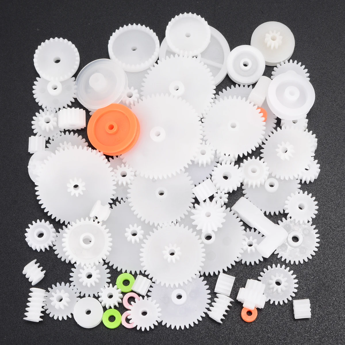 Plastic Gear Kit Shaft Single Double Layer Crown Worm Cog Wheels 0.5M Mixed 64pcs Gears DIY Toy Robot Motor Model Accessories