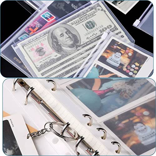 Plastica Cartelle,20 Pezzi Borsa a Fogli Mobili Trasparente in PVC con Cerniera Tasca per Raccoglitore a 6 Fori per Cerniera,Cartelle Portadocumenti Plastica