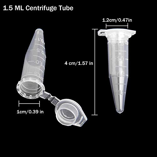 Plastica Centrifuga Provetta 300 Pezzi Provetta da Centrifuga Campione Contenitore con Coperchio Tappi a Granuli con Coperchio 1,5 ml Trasparente per Provette in Plastica Campione