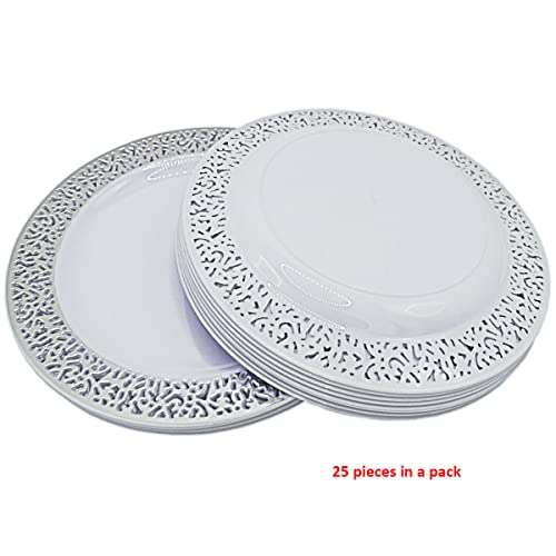 Oro di plastica Cucina Occidentale Targa Oro Rosa Argento Cena Piatto Da Tavola 7.5 10.25-Pollici Cavo Piatto (Venduto 25pc in un pacchetto) (10.25'' diametro 26cm argento 25pz)