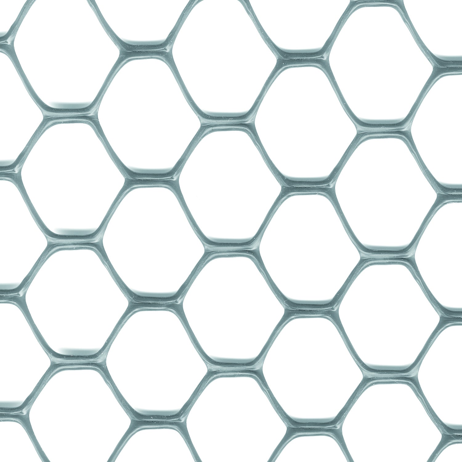 Rete protettiva in plastica a maglia esagonale. Con bordo rinforzato, liscio e non tagliente. Prodotta con HDPE 100% vergine. Dimensione del prodotto 0,5x5 m, argento