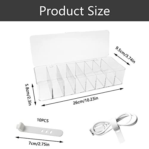 Plastica Trasparente Scatola Organizer Cavi,Scatola Immagazzinaggio Cavi Dati,Plastica Organizer Cavi,con Coperchio e 10 Cinghie di Cavo in Silicone,per Selezione dei Cavi,Ufficio,Casa (8 Scomparti)