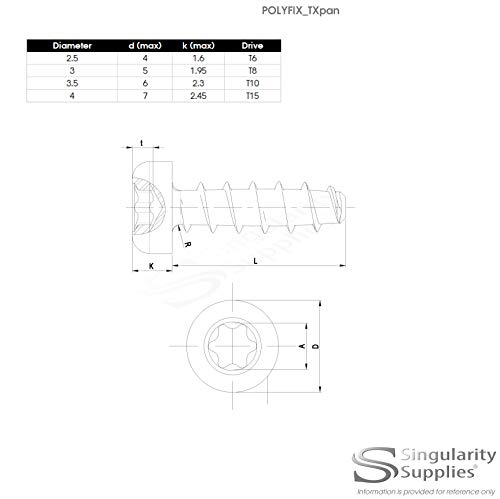 D3.5 (3,5 mm x 20 mm) TX - Viti per plastica (trilobulare), in acciaio inox (A2) (confezione da 20)