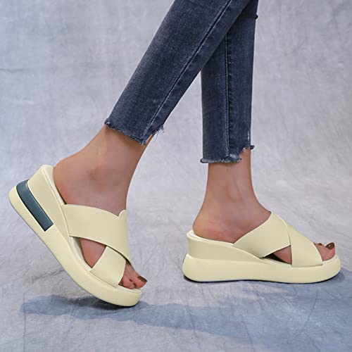 JLGY Plateau, sandali da donna con zeppa, sandali da spiaggia, sandali estivi, morbidi, comodi e piatti, beige., 41