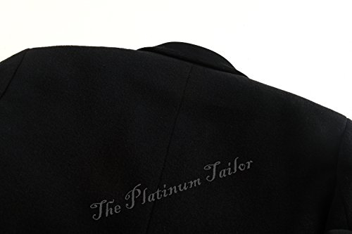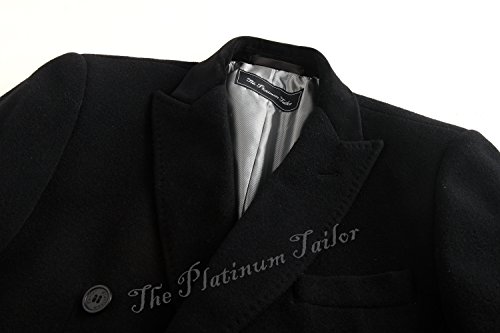 The Platinum Tailor Uomini Doppio Petto Nero cachemire & Lana inverno cappotto di velluto Collare e Silver Lining