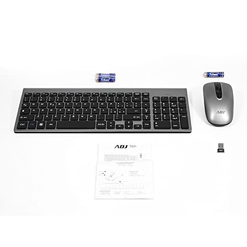 ADJ Platinum KW10 Set Tastiera Multimediale e Mouse Wireless, Layout Italiano QWERTY, per PC/Laptop/Notebook Windows, Tasti Silenziosi, Senza Fili, 102 Tasti, Mouse Ergonomico 1600 DPI, Silver/Nero