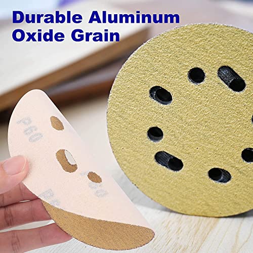 Platinumedge - Dischi abrasivi a 8 fori, 120 mm, grana assortita, per levigatrice orbitale casuale, grana 60/80/100/120/150/220, grana assortita, confezione da 120