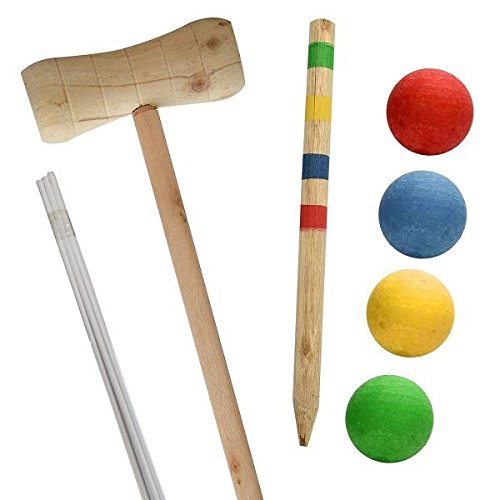 New 4 Player croquet set gioco da giardino in legno di pino palle completo Hoops 4 Mallet