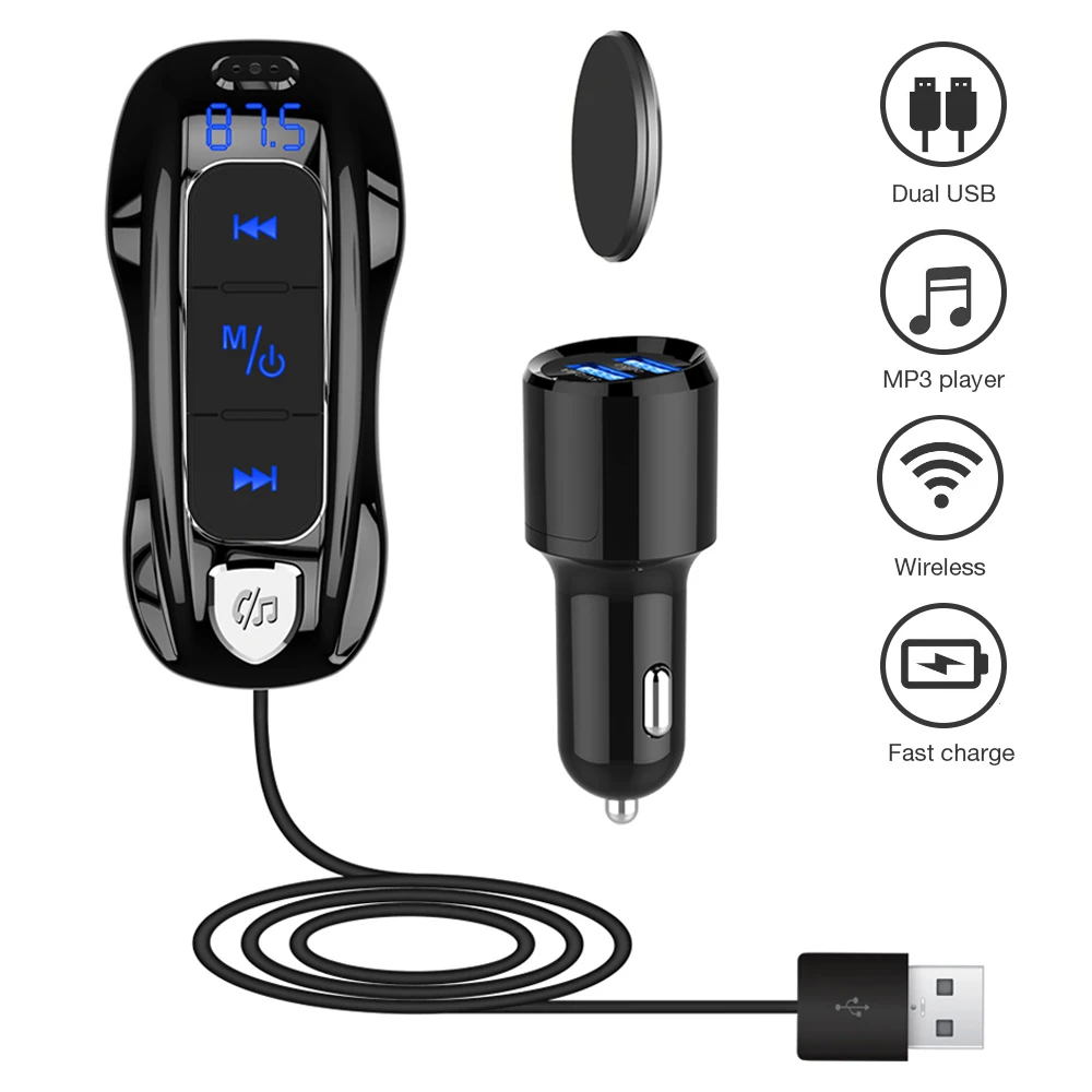 Car Mp3 Player Multifunction Wireless Bluetooth Kit Dual Usb Hands Free Calling Fast Charge Support TF Card