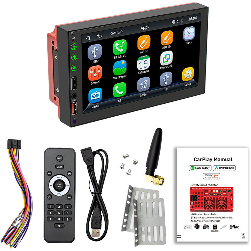 Lettore per auto portatile da 7 pollici con touchscreen digitale ad alta nitidezza, connessione BT, supporto carplay e Android Auto, libera le mani e rendi la guida più sicura. L'assistenza alla retromarcia è supportata per aiutarti a parcheggiare la tua auto nel posto giusto. Caratteristiche: Display ad alta nitidezza: lettore autoradio da 7 pollici con touchscreen capacitivo ad alta nitidezza, risposta sensibile, alta risoluzione e facile da usare. Con pulsanti luminosi colorati, che rendono l'abitacolo più fresco. Connessione BT: Utilizzando il chip BT5.1, il segnale è più stabile, la velocità di trasmissione è più veloce, può essere accoppiato automaticamente con la maggior parte dei telefoni e supporta le chiamate in vivavoce e la riproduzione di musica BT. Collegamento telefonico: supporta il carplay per i telefoni IOS e Andriod auto per i telefoni Android, supporta il controllo vocale, libera le mani, ti consente di concentrarti sulle condizioni della strada e rende la guida