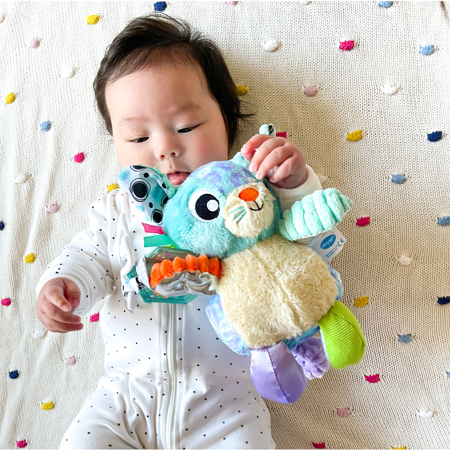 Dettagli del prodotto: Età: da 0 mesi L'Amico Sensoriale nel sito Design di un gatto convince grandi e piccini. Le orecchie con lamina scoppiettante, il sonaglio integrato e l'anello per la dentizione offrono molte possibilità di gioco e accompagnano il bambino in un viaggio multisensoriale. Grazie a una clip allegata, l'amico di gioco può essere attaccato in un attimo anche ai seggiolini auto e simili. Dimensioni e peso: Dimensioni da assemblato (lunghezza x larghezza x altezza): 17,2 x 7,5 x 33,5 cm Peso: 0,12 kg Materiale e cura: Materiale: 75,70 % poliestere, 1,87 % PET, 4,67 % PS, 17,76 % PP Istruzioni per la cura: Pulire solo esternamente. Non immergere in acqua. Avvertenze e istruzioni di sicurezza: Attenzione: rimuovere tutti gli imballaggi prima dell'uso.