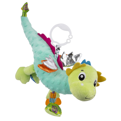Dettagli del prodotto: Età: da 0 mesi L'Amico Sensoriale, nel sito Design di un drago, convince grandi e piccini. Ali con lamina scoppiettante, un sonaglio integrato e altre opzioni di gioco accompagnano il bambino in un viaggio multisensoriale. Grazie a una clip allegata, l'amico di gioco può essere attaccato in un attimo anche ai seggiolini auto e simili. Dimensioni e peso: Dimensioni da montato (lunghezza x larghezza x altezza): 36,7 x 7,5 x 24,9 cm Peso: 0,15 kg Materiale e cura: Materiale: 77,04 % poliestere, 2,22 % PET, 5,19 % ABS, 2,22 % PS,7,41 % PP, 5,93 % EVA Istruzioni per la cura: Pulire solo esternamente. Non immergere in acqua. Avvertenze e istruzioni di sicurezza: Attenzione: rimuovere tutti gli imballaggi prima dell'uso.